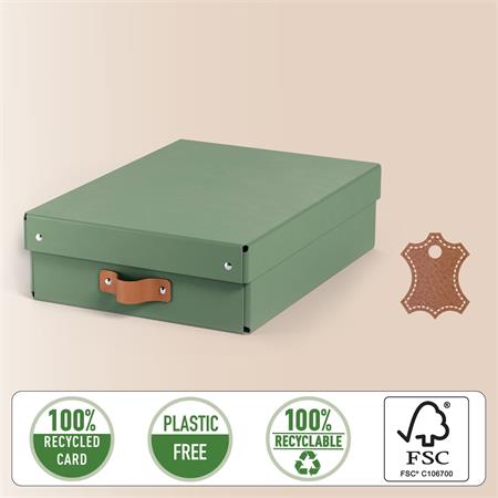 Tárolódoboz, M méret, alacsony, LEITZ "Puro", zsályazöld