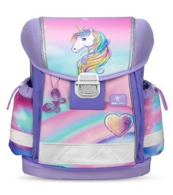 Iskolatáska, fémcsat, BELMIL "Classy Heart of the Rainbow", unikornis