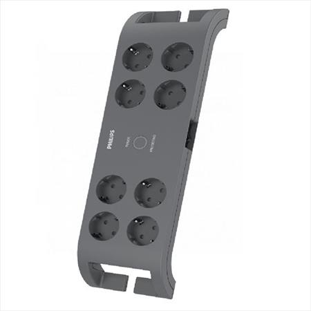 Elosztósor, 8 csatlakozóaljzat, túlfeszültség-védelemmel, 2 m kábel, PHILIPS, sötétszürke
